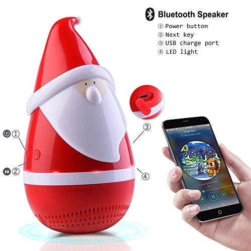 Highlights: √A cute Santa Claus toy light Bluetooth speaker, rich bass, crystal clear powerful sound, all kidsadult would like it √Touching the nose and facial whiskers of tumbler can play a wonderful piano sound √360 degrees rotation, shaking, reversing, will eventually stand up, accompanied by music shaking √Switch bluetooth mode, you can connect with smart phone and play music easily and quickly √Built-in rechargeable battery, mini USB charging, playing music about 2~4hours √Good decoration , put it on your bedroom or dining table wherever you want