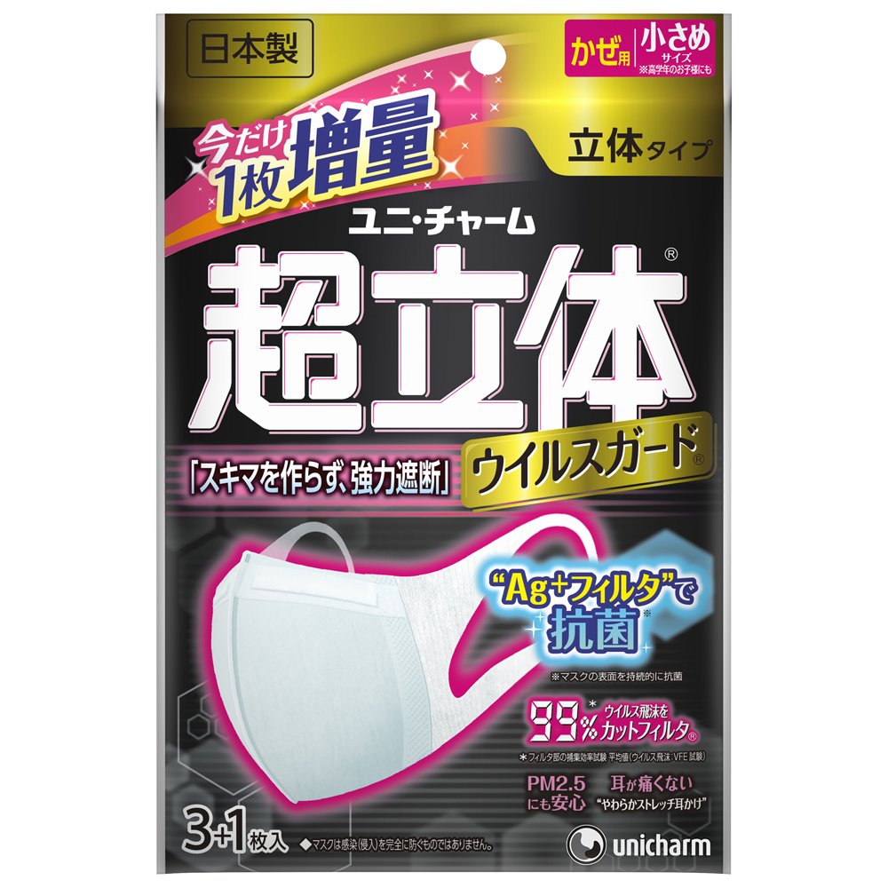Japan Facemask - (Made in Japan PM2.5 corresponding) supersolid mask virus guard Ag + filter antibacterial smaller size 3 + 1 pieces (unicharm) *AF27*
