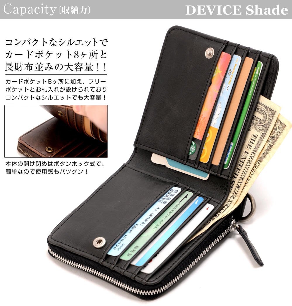 DEVICE Shade series two-fold wallet with shading by arranging cloths of similar colors with different textures in a two-tone color style.