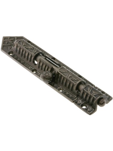 -. Title : Cast Iron Victorian Slide Bolt With Aesthetic Movement Design. Slide Door Bolt.