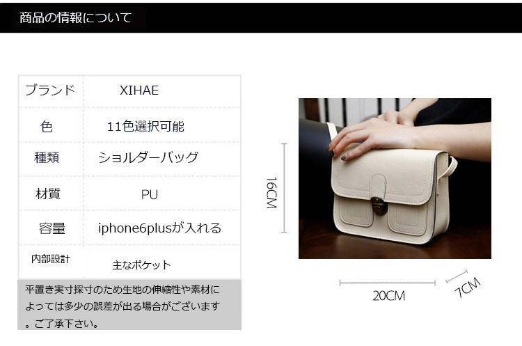 商品番号:WA002商品説明:◆伸縮性:有り◆厚さ:普通◆素材:PU、ポリエステル◆サイズ:高さ:16cm 長さ:20cm 厚さ:7cm (バックのサイズについてiphon6plusが入れる程度)◆色:ワインレッド、ブラック、ピンク、ゴールデン、シルバー、ブラウン、ビリジャン、ライトブラウン,ライトブルー、グレー、ベージュ◆重量:230g約◆商品内容:1xバッグ特徴:【軽くて、携帯便利】小さいサイズなので、軽くて、携帯便利です。出かける時に最適!!【多彩な色】十一の種類な色を選択可能です。簡単的にファッションなデザインのカバンです。おすすめです。【欧米風】レトロな欧米風のファッションなバッグなので、学生にも人気があります。
