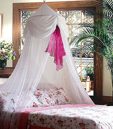 White & Pink Chiffon Furbelow Princess Bed Canopy By SID