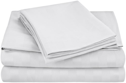 Cathay Home Luxury Dobby Stripes Sheet Set, Queen, White
