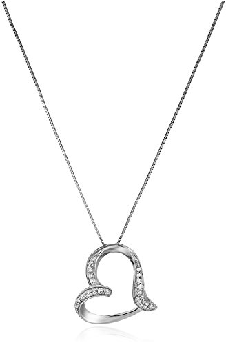 -. Binding : Jewelry -. Brand : Amazon Collection -. Color : white -. Department : womens -. EAN : 0032964862677 -. Feature : White gold necklace featuring tilted-heart pendant with open center and insets of round diamonds along border / Box chain with sP.R.Ing-ring clasp / All our diamond suppliers confirm that they comply with the Kimberley Process to ensure that their diamonds are conflict free. / Imported / Carat weight listed is the total for all stones. -. Label : Amazon Curated Collection -. Manufacturer : Amazon Curated Collection -. Model : F5432V8ZZDJ2 -. MPN : F5432V8ZZDJ2 -. PartNumber : F5432V8ZZDJ2 -. ProductGroup : Jewelry -. ProductTypeName : FINENECKLACEBRACELETANKLET -. Publisher : Amazon Curated Collection -. Studio : Amazon Curated Collection -. Title : 10k White Gold Diamond Heart Pendant Necklace (1/10 cttw, I-J Color, I3 Clarity), 18" -. UPC : 032964862677