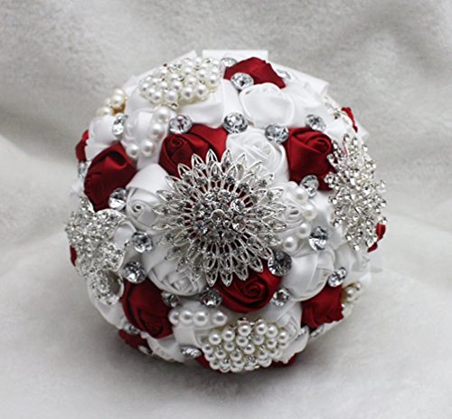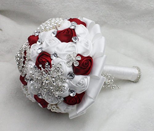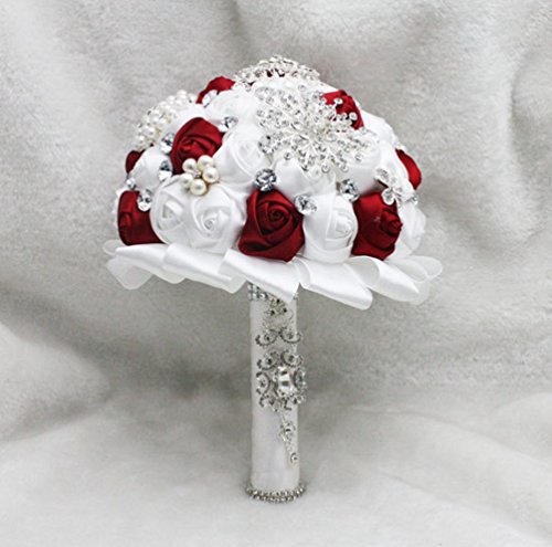 Wedding Bouquets,Bridal Bride Holding Flowers,Water Drops (white + burgundy)