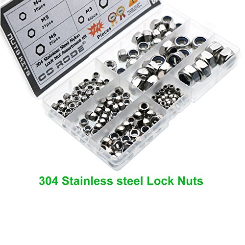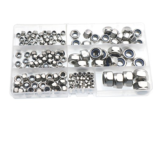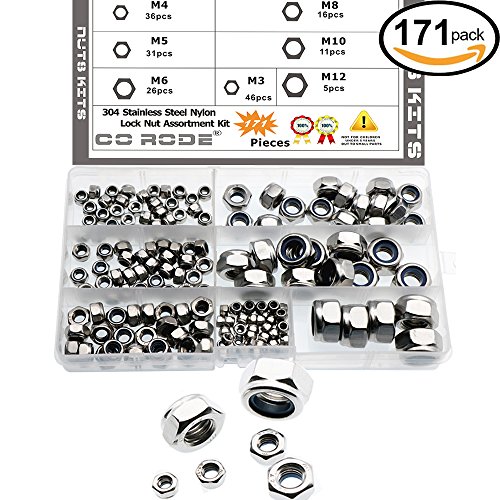 171 Pieces Nylon Insert Lock Nuts Assortment Kit (M3 M4 M5 M6 M8 M10 M12;304 Stainless Steel)