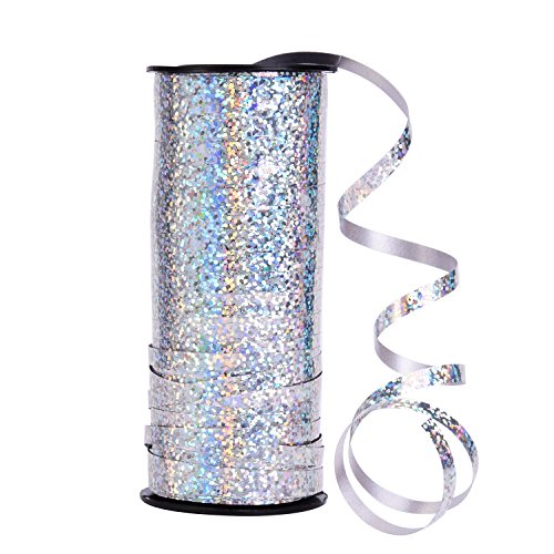 Outus Crimped Curling Ribbon Roll Silver Balloon Ribbons for Parties, Festival, Florist, Crafts and Gift Wrapping, 5 mm, 100 Yard