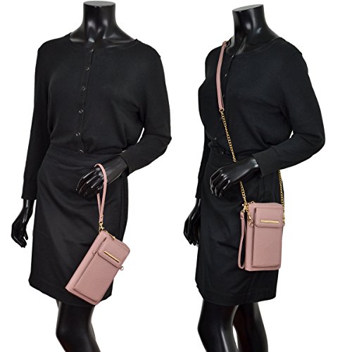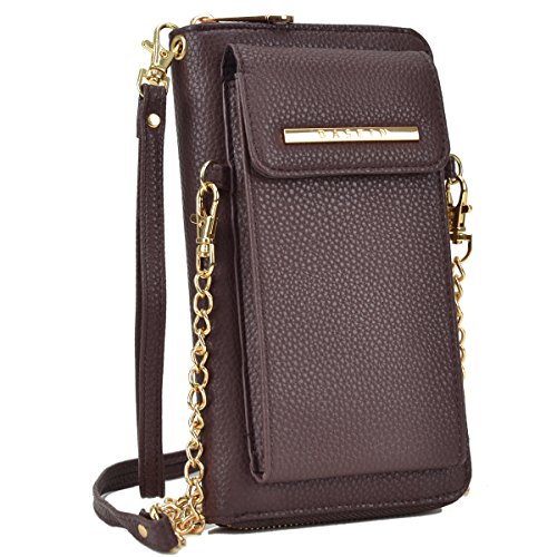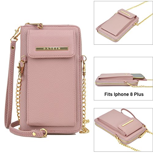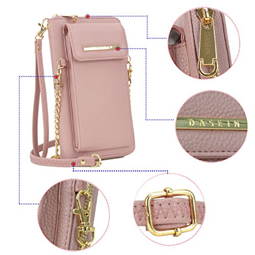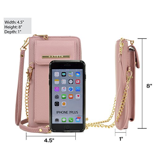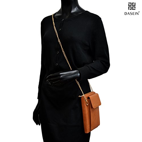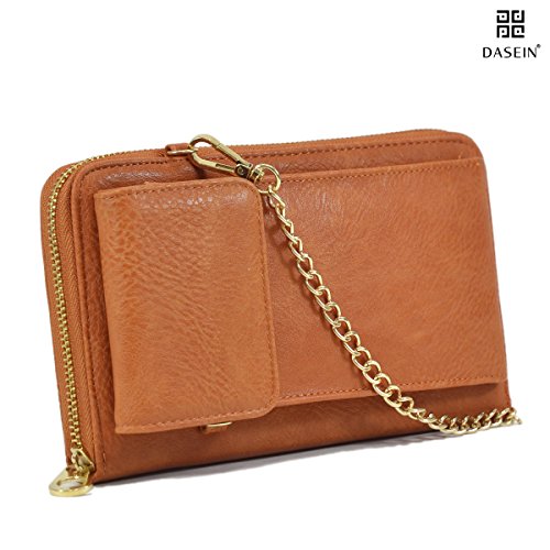 Product Description Dasein Fashion Messenger Crossbody Bag Chain Wallet with Velcro Snap Phone Case This all-in-one crossbody wallet comes with a phone case that fits most of the nowadays trendy tech phones, with a detachable chain shoulder strap. You can carry your cell phone, keys, credit cards, ID, cash, coins and other essentials in this fashionable messenger crossbody wallet. Why Buy from Fashlets? * Cut out the middle-man and can offer you near wholesale-level prices. * Can solve all order related problems in the shortest time with U.S. local customer service. * Every single item is shipped directly from Amazon Warehouse or Los Angeles. * Our warehouse business requires us to be one of the first to roll out the latest trends in the fashion world. * We offer free standard shipping in the 48 contiguous United States About Dasein 'Dasein' is a German word from existentialist philosophy meaning, roughly, 'the being' or 'being there.' When we created Dasein, we wanted our bags to spotlight the person behind the fashion accessory, rather than the brand itself. We believe in creating fashion that matches individual expression, rather than a means to sell expensive designer logos. With everything affordably priced, we make the latest handbag styles of the season accessible to every budget fashionista. So go ahead and pick up that gorgeous looking bag you've always wanted, at an unbelievably bargain price. *NOTE*: Due to differences between monitor displays, actual color may vary slightly from image. Little leather smell is normal. Putting it in well-ventilated areas for few days, the smell will disappear.