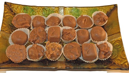 -. Title : Dorothy's Candies Assorted Chocolates on Glass Candy Tray