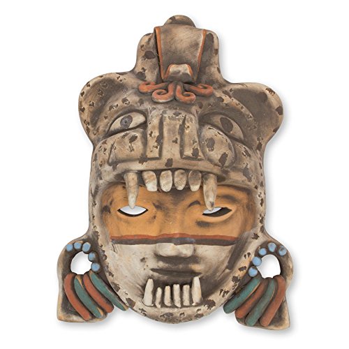 NOVICA Decorative Archaeological Large Ceramic Mask, Earthtone, 'Tlaxcala Jaguar Warrior'