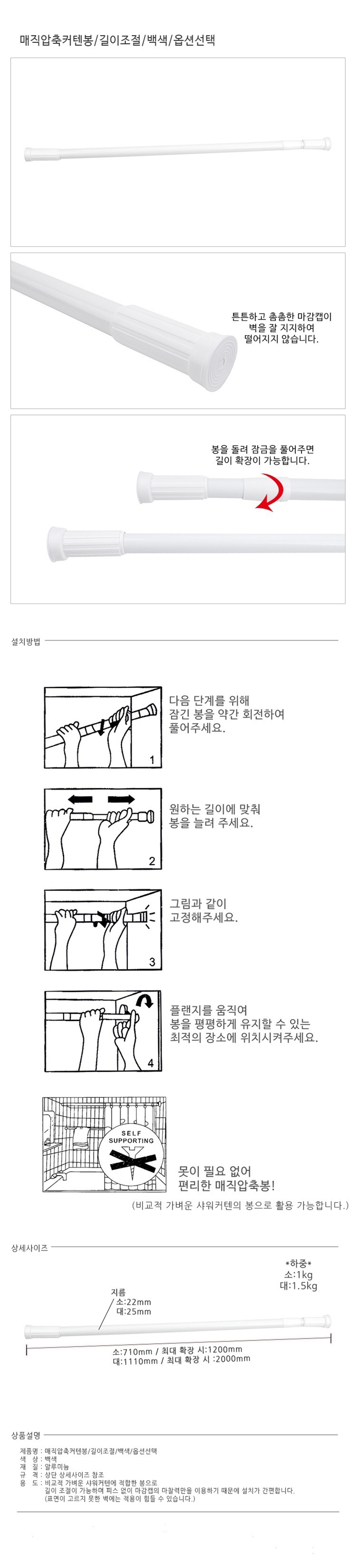 Multi-purpose hanger rod Compression length adjustable White base Curtain rod Shower rod Bending rod Curtain rod