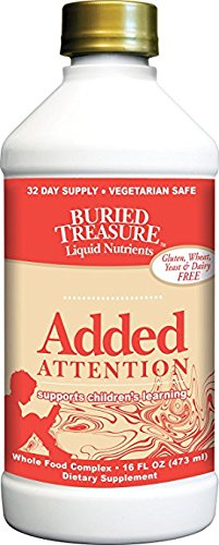 Buried Treasure’s Added Attention is formulated with the highest quality ingredients to support a child’s ability to focus. Highly active children may have special dietary needs for B Vitamins, DHA, DMAE, and trace minerals; all provided by Added Attention.* Children prefer this good tasting liquid to pills or capsules. *This statement has not been evaluated by the FDA. This product in not intended to diagnose, treat, cure or prevent any disease.Feature