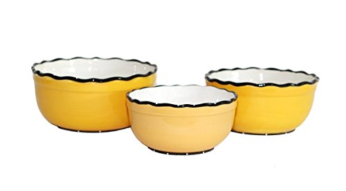 Tuscany Ruffle Butterscotch Yellow, Hand Painted Ceramic, Set of 3 Mixing Bowls, 85569 by ACK