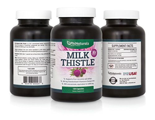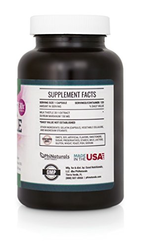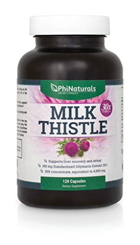 Milk Thistle Silymarin 30x Extract (Standardized 30:1) by Phi Naturals | 150 mg Per Capsule - 120 Capsules | Supports Liver Cleanse, Detox and more