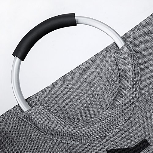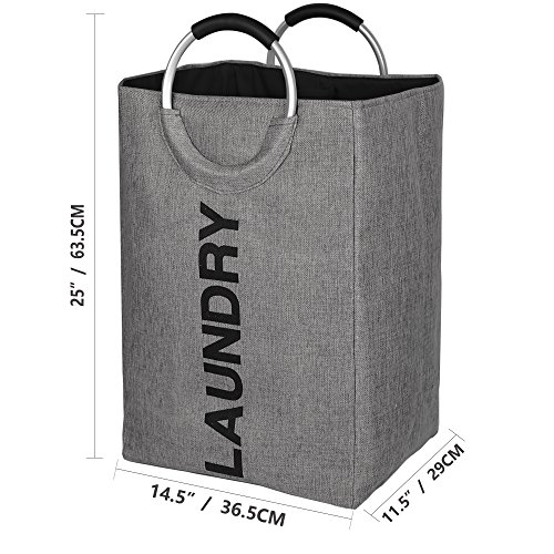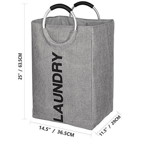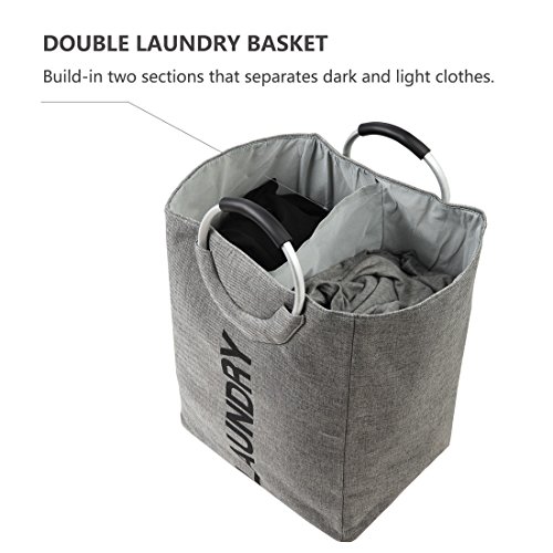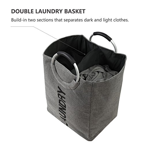 DOKEHOM - Your best home storage assistant: Features - Double laundry basket: build-in two section that separates dark and light clothes. - Aluminum ring handle with soft grip: durable and easy to carry. - Material: 900D Polyester with thick EVA coating, strong protection. - Dimensions: 11.5"(L) x 14.5"(W) x 25"(H, includes handle) / (29x36.5x63.5cm) approx. - Suitable size for most situations use, such as closet, table and office for toys, books, CDs, clothes, underwear storage. Washing tips - Wipe clean only, do not use abrasive cleaner. - Do not use washing machine to clean the bag. 0 |