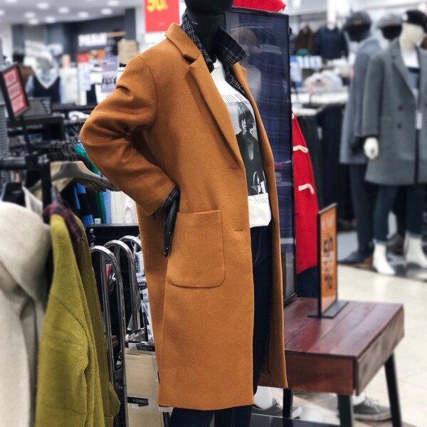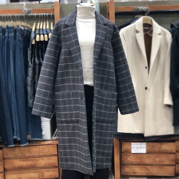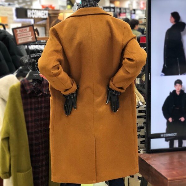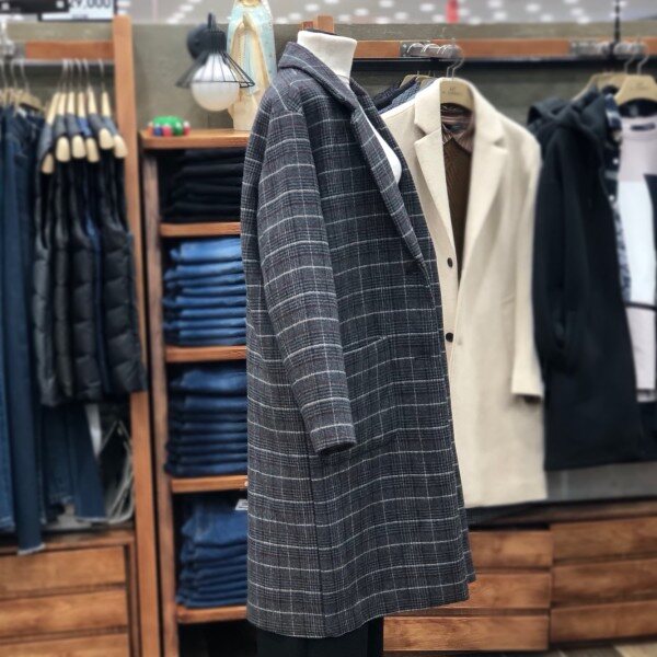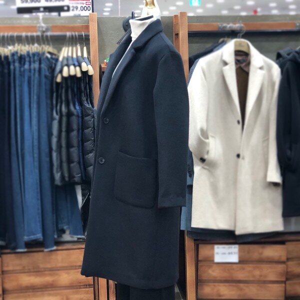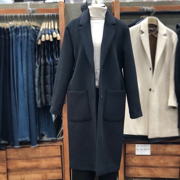 베이직한 스타일의 롱코트로 캐주얼이나정장슬랙스에도 잘 어울립니다.살짝 루즈핏이라 편하게 입기 좋아요.