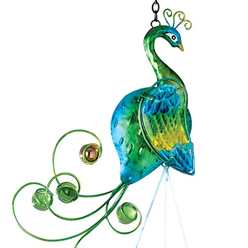 Bits and Pieces - Colorful Peacock Wind Chimes-Metal and Glass Hanging Sculpture and Chimes - Add Musical Charm to Outdoor Area
