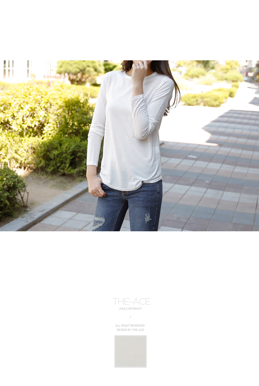 1. 기본 핏이지만 네크라인의 멀티로 유니크함까지 갖춘 100% 텐셀 긴팔 티