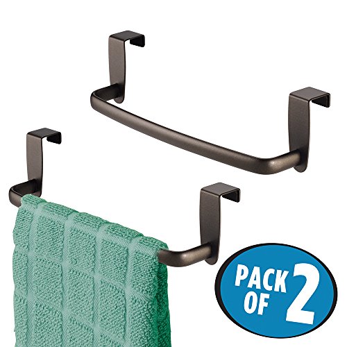 mDesign Over the Cabinet Kitchen Dish Towel Bar Holder - Pack of 2, Bronze