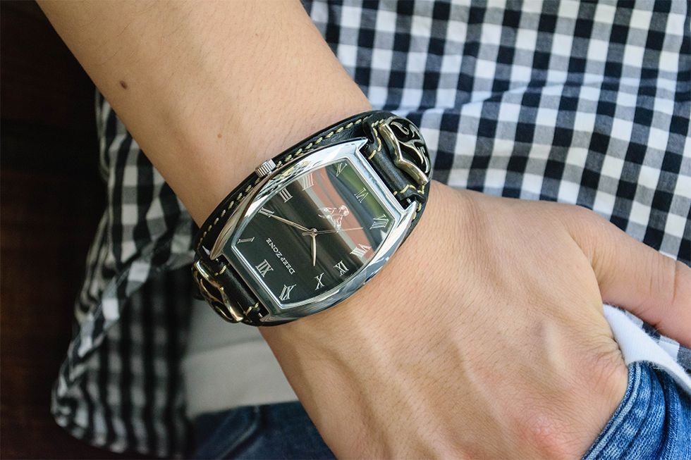 メンズ腕時計 トノーフェイス レザーブレスウォッチ贅沢に使用したイタリアンレザーのブレスベルト。レアなホワイトメタルで作られたクロスコンチョ。ビジネスにカジュアルに愛用できるブレスウォッチは上品で飽きのこないフォルム!◆ ケースサイズ:H53mm W38mm D11mm◆ 有効着用サイズ:約16cm~19cm◆ 素材  →ベルト:牛革(イタリアンレザー)  →コンチョ:ホワイトメタル  →バックル:合金  →ケース:ステンレス◆ 特徴  ・国産ムーブメント仕様  ・日常生活防水  ・保証書付  ・専用ケース付属