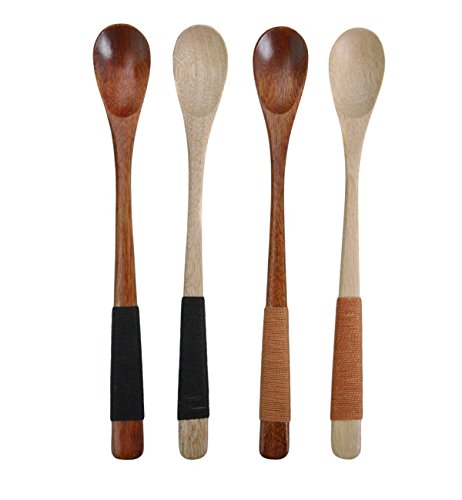 Wowlife 4 Pcs 19*2.5cm Handmade Wooden Spoons Long Handle Coffee Tea Drink Bar Cocktail Stirrer Mixing Spoon