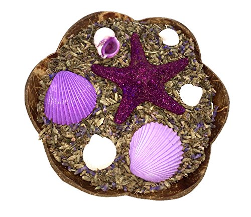 Lavender Gift with Pure Dried Lavender Buds in Coconut Dish with Starfish and Seashells – Relaxing and Healthy Natural Air Freshener and Aromatherapy