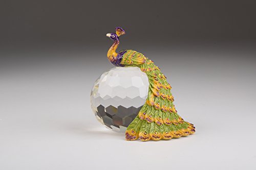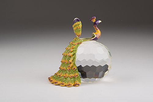 Colorful Peacock on Crystal Ball Faberge Styled Handmade Decoration Home Decor Original Artwork