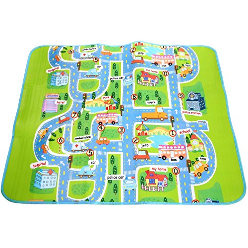 -. Feature : LARGE PLAT MAT -- Measures 160 x 130cm/62.4 x 50.7inch, unique design with vivid colors for children to learn the city and community life. / FLEXIBLE & WATERPROOF -- Easy to clean, wipe with a soft damp cloth for food and drin. / INDOOR CRAWLING MAT -- Perfect for reducing noise and impact, and a great insulator on all floor surfaces. / BABY PLAY MAT -- Ideal for encouraging crawling, rolling, sitting up, and learning to walk. / NON-TOXIC & SAFE -- Free of Phthalate, BPA, Lead, Latex, Formaldehyde and EVA. (Tested to European Toy Standards EN71)