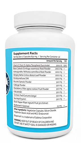 COMPREHENSIVE FORMULA | One serving of Estrogen Balance gives you 200 mg of DIM (double the norm), as well as 2.5 mg of Bioperine to maximize absorption. We also added the whole cruciferous vegetables: Brussels sprouts, cabbage and kale as well as Tumeric and Sea Kelp to create a wide spectrum of estrogen balancing nutrients. Vitamin E & BioPerine present in our DIM enhances bioavailability and absorption of DIM