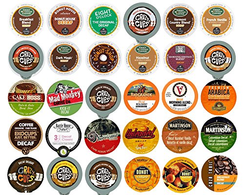 Authentic Donut Shop Vanilla Hazelnut Decaf, Barrie House Decaf, Brooklyn Bean Breakfast Blend Decaf, Brooklyn Bean Fugaddaboutit Decaf, Caribou Blend Decaf, Caza Trail Breakfast Blend Decaf, Coffee People Donut Shop Decaf, Counting Sheep 40 Winks (Bedtime Blend), Counting Sheep Lights Out!, (2) Crazy Cups Decaf Delight,Diedrich Morning Edition Decaf, Donut House Collection Donut House Decaf, Eight O Clock Decaf, EkoCups Decaf, Green Mountain Breakfast Blend Decaf, Green Mountain Dark Magic Decaf, Green Mountain French Vanilla Decaf, Green Mountain Hazelnut Decaf, Guy Fieri Unleaded Decaf, Hamilton Mills Morning Roast Decaf, Hurricane Cape Verde Decaf, Mad Monkey Kick It Decaf, Martinsons Colombian Decaf, Martinsons Vanilla Hazelnut Decaf, Newman's Special Decaf, Second Cup Decaf, The Cake Boss Dulce de Leche Decaf, Tim Horton's Decaf, Tullys French Roast DecafFeature