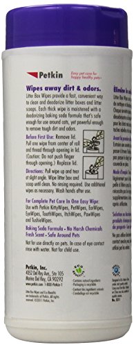 ReleaseDate : 2015-02-10 Studio : AmazonUs/PEOJ9 Publisher : AmazonUs/PEOJ9 Binding : Health and Beauty Product Description Litter Box Wipes provide a fast, convenient way to clean and deodorize litter boxes and litter scoops. Each thick wipe is moistened with a deodorizing baking soda formula that's safe enough for use around cats, yet powerful enough to remove tough dirt and odors. 0