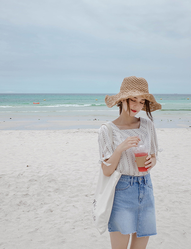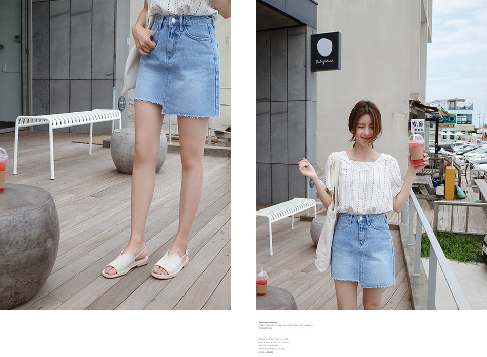 언발란스한 밑단이 포인트인 데님스커트예요:)