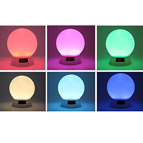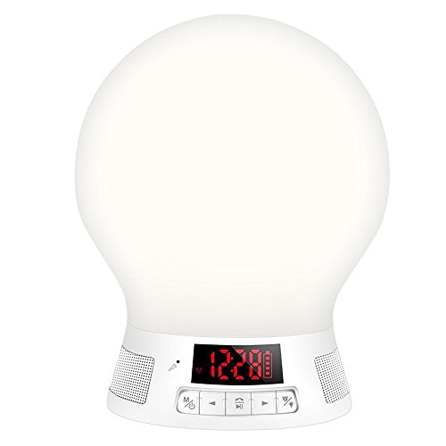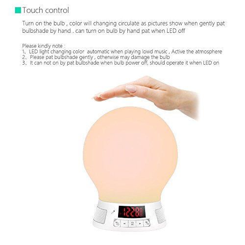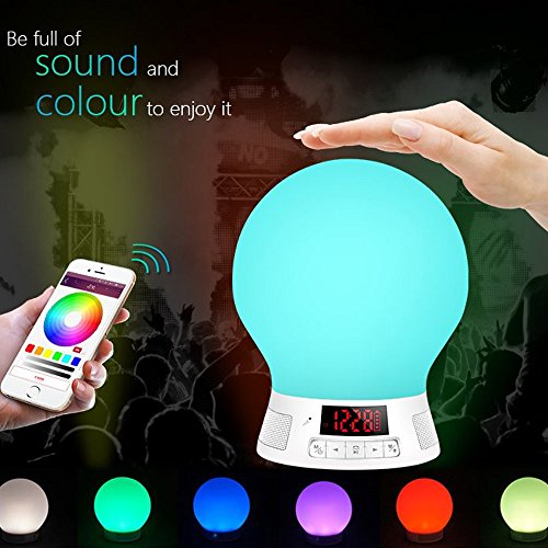 Main Feature: Bluetooth 4.0 dual-mode, high-quality bluetooth speakers. Support bluetooth phone, answer, hang up, redial function. Bluetooth transmission distance is greater than 10 meters. Bluetooth music playback. Supports TF card MP3 WMA WAV format music player. Maximum support 64G TF card. Supports AUX IN function. Supports voice prompts. Supports FM radio function. Supports alarm clock setting function. Supports Mobile APP functional operation(Android and iOS system). Supports APP switch timing control lamp function. Pat sensor lights change color function. Compatible for iOS 7.0 upgrade series, Android 2.3.3 and upgrade smartphones.