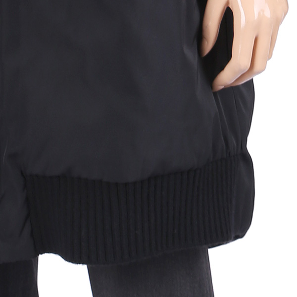이 제품의 뒷판은 흑블랙의 구스다운패딩코드로 원단자체의 흑블랙으로 광택이 있는 소재로 부드러운 질감과 촉감이 매우 좋으며