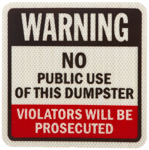 SmartSign 3M High Intensity Grade Reflective Sign, Legend "Warning: No Public Use of this Dumpster", 9" square, Black/Red on White