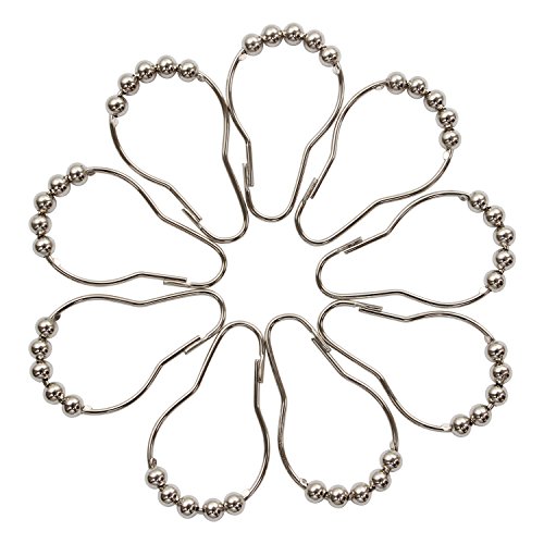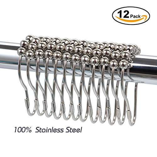 INFOS 12 Piece Set Rustproof Stainless Steel Shower Curtain Rings Hooks for Bathroom Shower Rod,Chrome