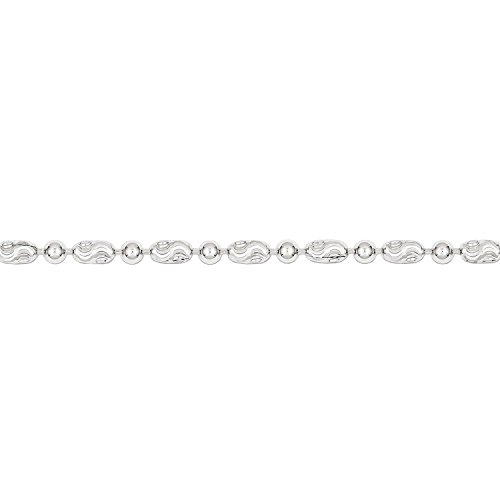 -. Title : Sterling Silver 3mm Polished Round and Textured Oval Bead Anklet