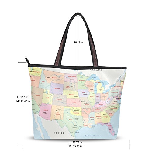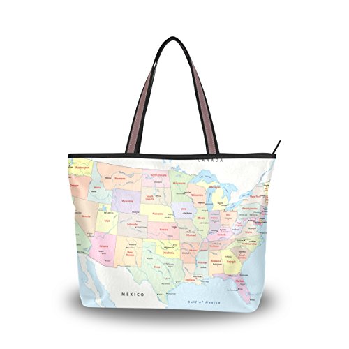 -. Title : JSTEL Women Large Tote Top Handle Shoulder Bags Usa Map Ladies Handbag