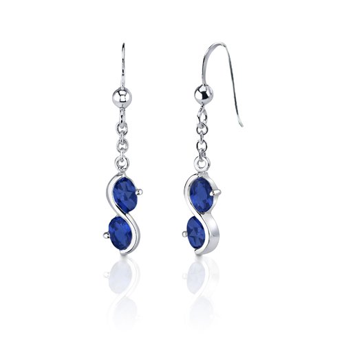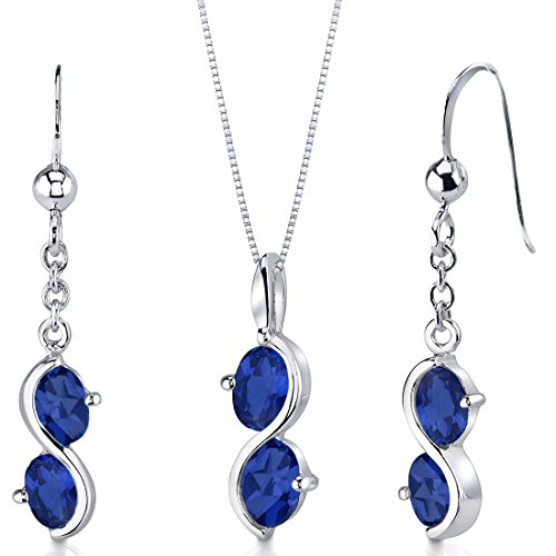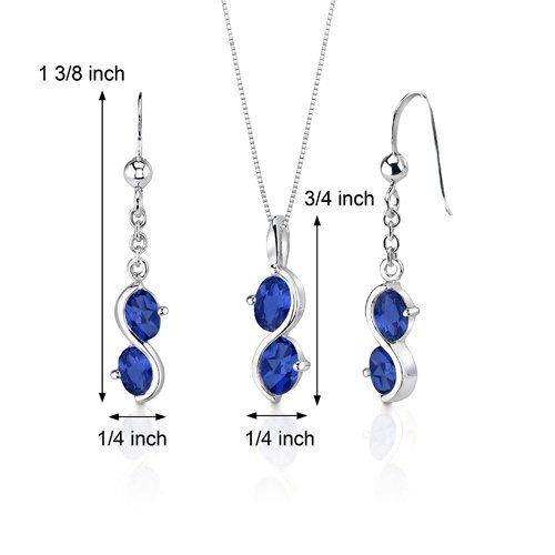 -. Title : Created Sapphire Pendant Earrings Necklace Sterling Silver Rhodium Nickel Finish Double Oval Shape
