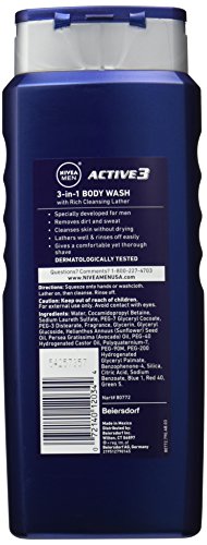 -. Binding : Health and Beauty -. Brand : Nivea Men -. Label : Nivea for Men -. Manufacturer : Nivea for Men -. ProductGroup : Beauty -. ProductTypeName : BEAUTY -. Publisher : Nivea for Men -. Size : 16.9 Ounces -. Studio : Nivea for Men -. Title : Nivea for Men Body Wash, 16.9 Ounce (Pack of 3)