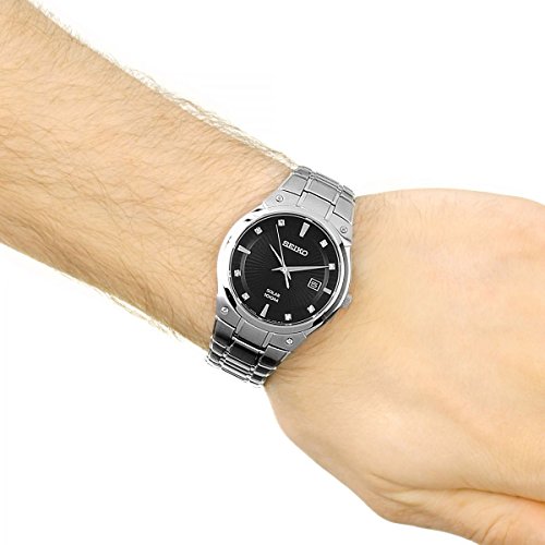 -. Binding : Watch -. Brand : Seiko -. Color : Silver -. Department : Mens -. EAN : 4954628206787 -. Feature : This casual watch is a solar powered watch; the battery is rechargeable through solar energy -The watch has a calendar function: Date, Solar / High quality 21 cm length and 21 mm width Silver Titanium strap with a Fold over with push button clasp / Case diameter: 41 mm,Case thickness: 10 mm, Case colour: Silver and Dial colour: Black / Water resistant: 10 bars-Weight: 125 g -. IsAdultProduct : 0 -. Label : SEIKO -. Manufacturer : SEIKO -. Model : SNE429P9 -. MPN : SNE429P9 -. PackageQuantity : 1 -. PartNumber : SNE429P9 -. ProductGroup : Watch -. ProductTypeName : WATCH -. Publisher : SEIKO -. Studio : SEIKO -. Title : SEIKO Silver Titanium Watch-SNE429P9