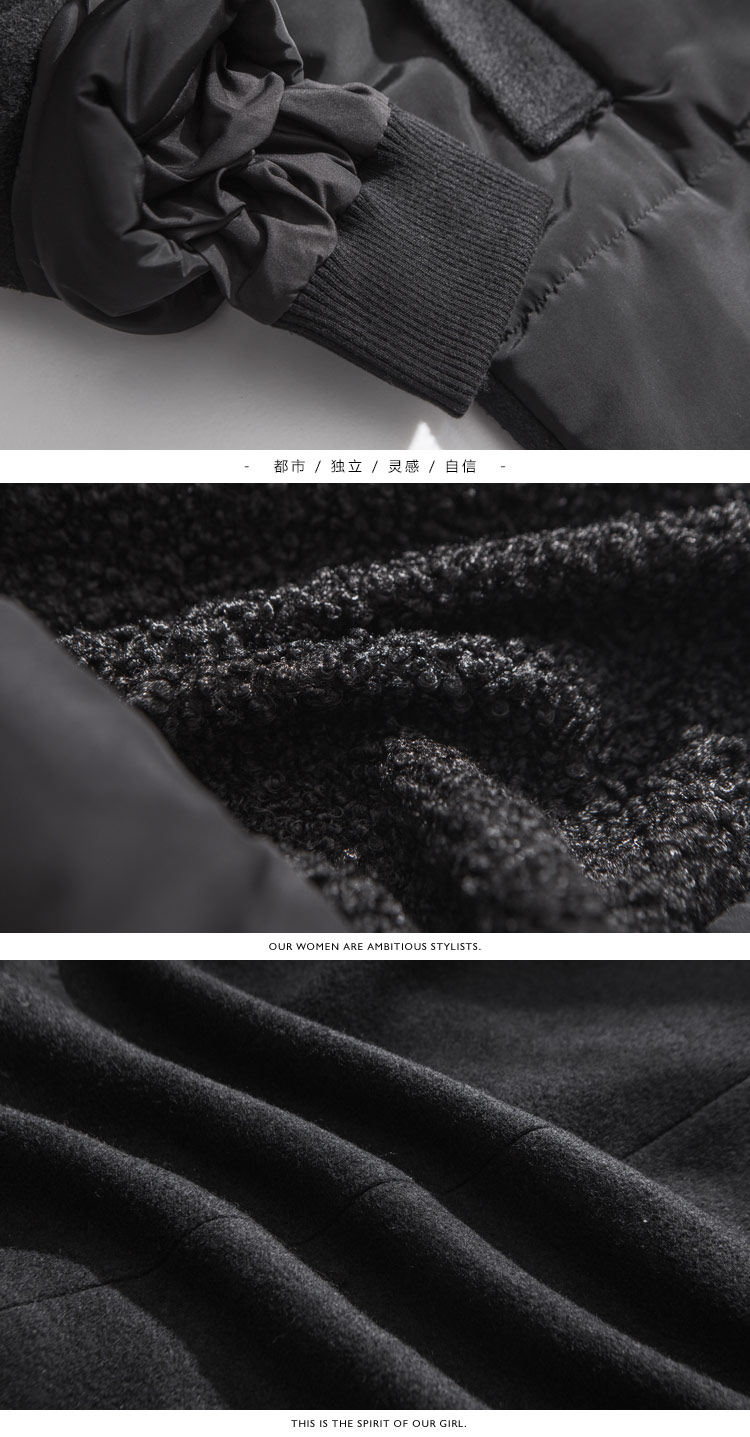 | 主 料:聚酯纤维配 料:70%聚酯纤维30%羊毛大身里料:聚酯纤维袖子里料:聚酯纤维帽子里料:聚酯纤维填充物:聚酯纤维颜 色:黑色、橡皮粉 |