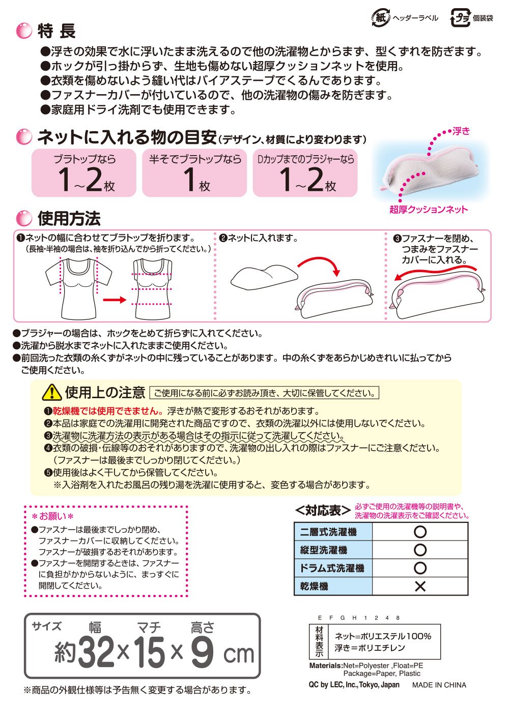 ● Since the zipper cover is attached, it will remove pain from other laundry and washing tub.