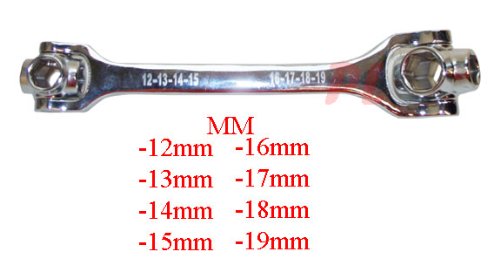 - Feature : 2pc 8 in 1 dog bone socket wrench set / SAE: 3/8'', 7/16'', 1/2", 9/16", 5/8", 11/16", 3/4'', 13/16" / MM: 12mm, 13mm, 14mm, 15mm, 16mm, 17mm, 18mm, 19mm / 8 socket size in a compact design; Cr-Mo steel for strength and durability. / Quantity: 2 socket wrenches