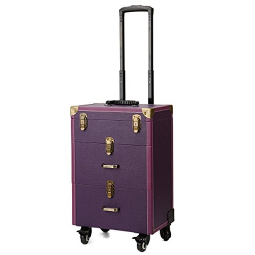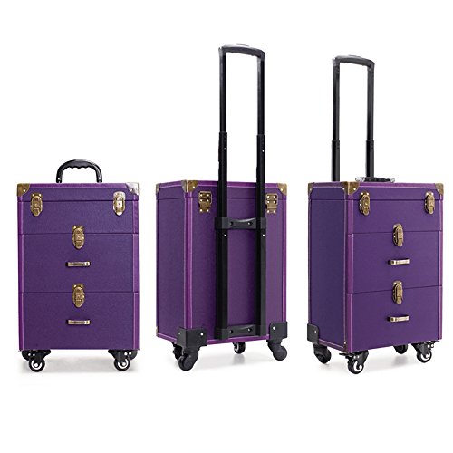(Lean)/Bags/Cases/Travel Cases Holders/DIRECT FROM USA/Lean Beauty Rolling Leather Makeup Case Travel Toiletry Case Nail Art Storage Bag on Wheel (Purple)