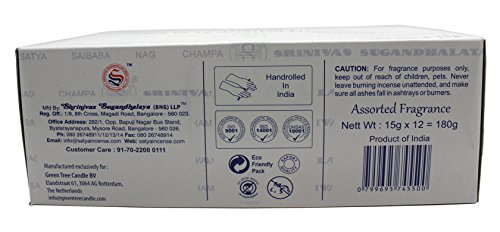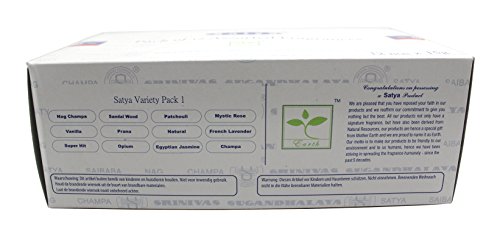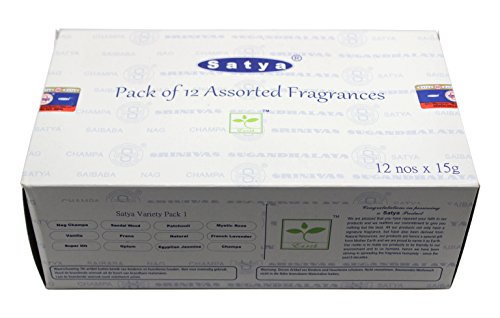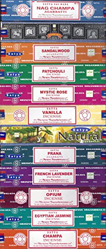 Set of 12 Nag Champa, Super Hit, Sandalwood, Patchouli, Mystic Rose, Vanilla, Prana, Natural, French Lavender, Opium, Egyptian Jasmine, Champa by Satya