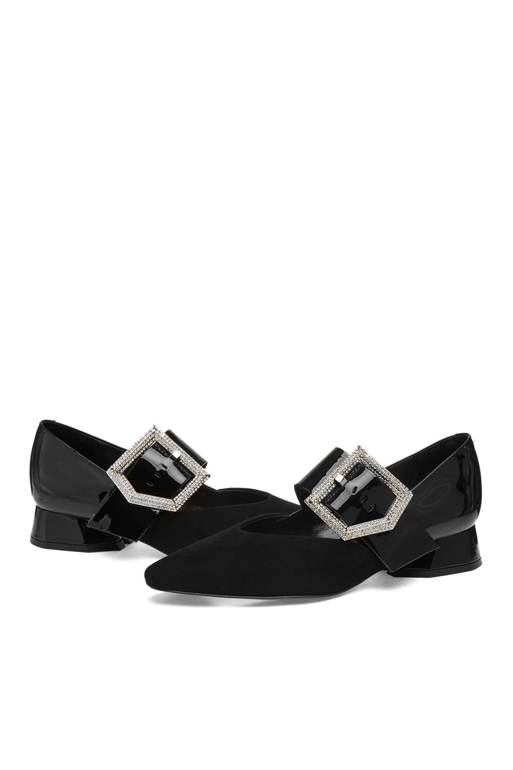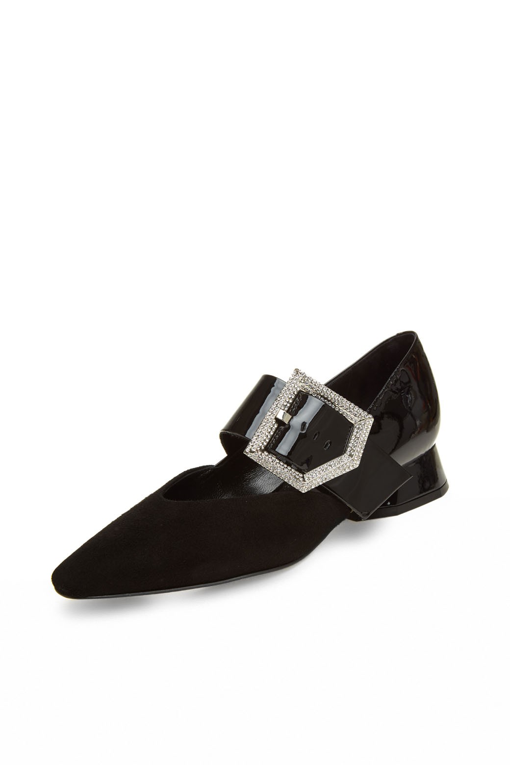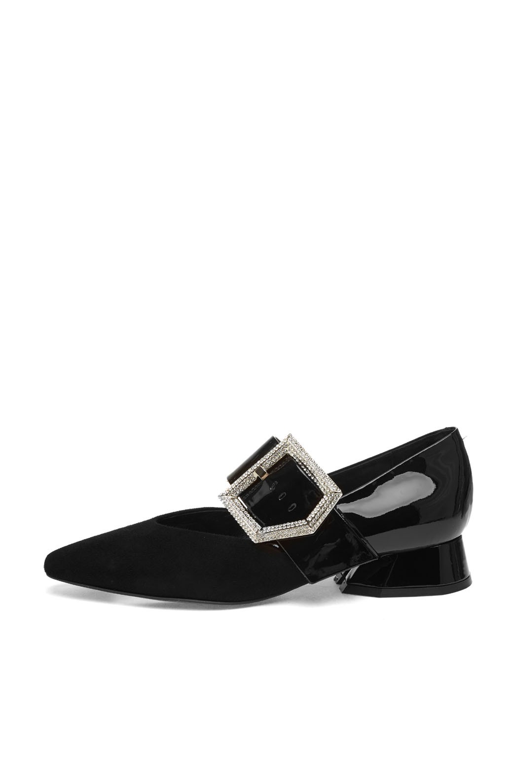 벨벳 소재에 포인티드 토를 적용해 세련된 디자인.