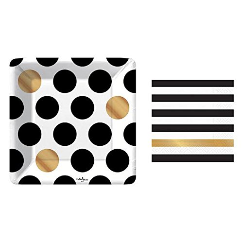 Kenzie Black and Gold Small Plates and Napkins By Design Design