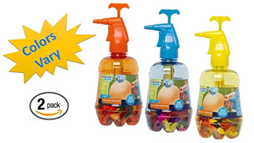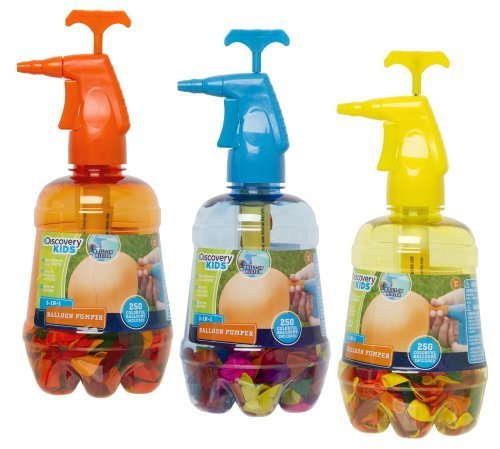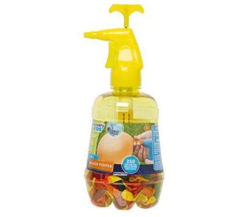 Studio : TopNotch Outlet Publisher : TopNotch Outlet Binding : Toy Product Description Balloon Pump - Water Balloon Pump (2) Double The Fun With TWO Kids 3-In-One Balloon Pumpers (Colors Vary) Balloon Inflator This 3-in-1 manual balloon pumper creates tons of fun in one nifty bottle. 1. The water setting fills balloons with water for a backyard water balloon party. 2. The air setting easily blows up your balloons for festive decorations. 3. There's even a bonus mister setting as well. Includes 250 colorful balloons to get the fun started. Assorted colors- no choice in color, shipped with two different colors at random in each bundle. 0
