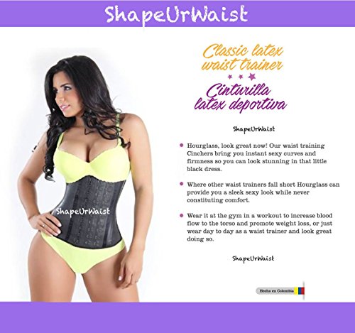 Our ShapeUrWaist waist trainer waist cincher Colombian fajas Reductoras gives you instant sexy curves creates a beautiful hourglass shape, so you can look amazing in that little black dress or during your workouts, this high compression shape wear silhouettes your body instantly and at the same time lower up to 5 inches from the waist, hips, abdomen trough its fajastec technology compression and perspiration. Fajas With 3 hooks rows and eye closure for sizing you can adjust as you make progress with your training and ensure you maintain a great figure at all times, our Latex waist trainer is a posture correcting piece that supports your spine, reducing back pain and prevents back fatigue and long term injury, wear it at the gym in workout to increase blood flow to the torso and promote weight loss or just wear it on the day to day as a waist cincher trainer and look great. Our fajas adelgazantes are Made 100% in Colombia with the highest quality our fajas cinturilla reductora provide the best results while never sacrificing comfort. BEST WAY TO PUT YOUR CINCHER ON: for the first time if you can have help or assistance of a friend or partner, they can help put pressure on both sides of the waist trimmer while you close the hooks into the eye closure from the bottom up, please note that this waist cincher has been designed to expand up to 4-5 inches, it is a little difficult at first but as you continue using it, will become second nature once you are used to do it. RESULTS: Midsection control Increased thermal activity Loss of inches reported Mobilizes fat cells Stimulates perspiration **WARNING** ShapeUrWaist Fajas Moldeadoras is a Registered Trademark. To ensure quality product, NEVER purchase ShapeUrWaist items out of ShapeUrWaist store or sellers. ShapeUrWaist IS NOT SOLD OR DISTRIBUTED FROM another sellers. WATCH OUT FOR IMITATIONS.Feature
